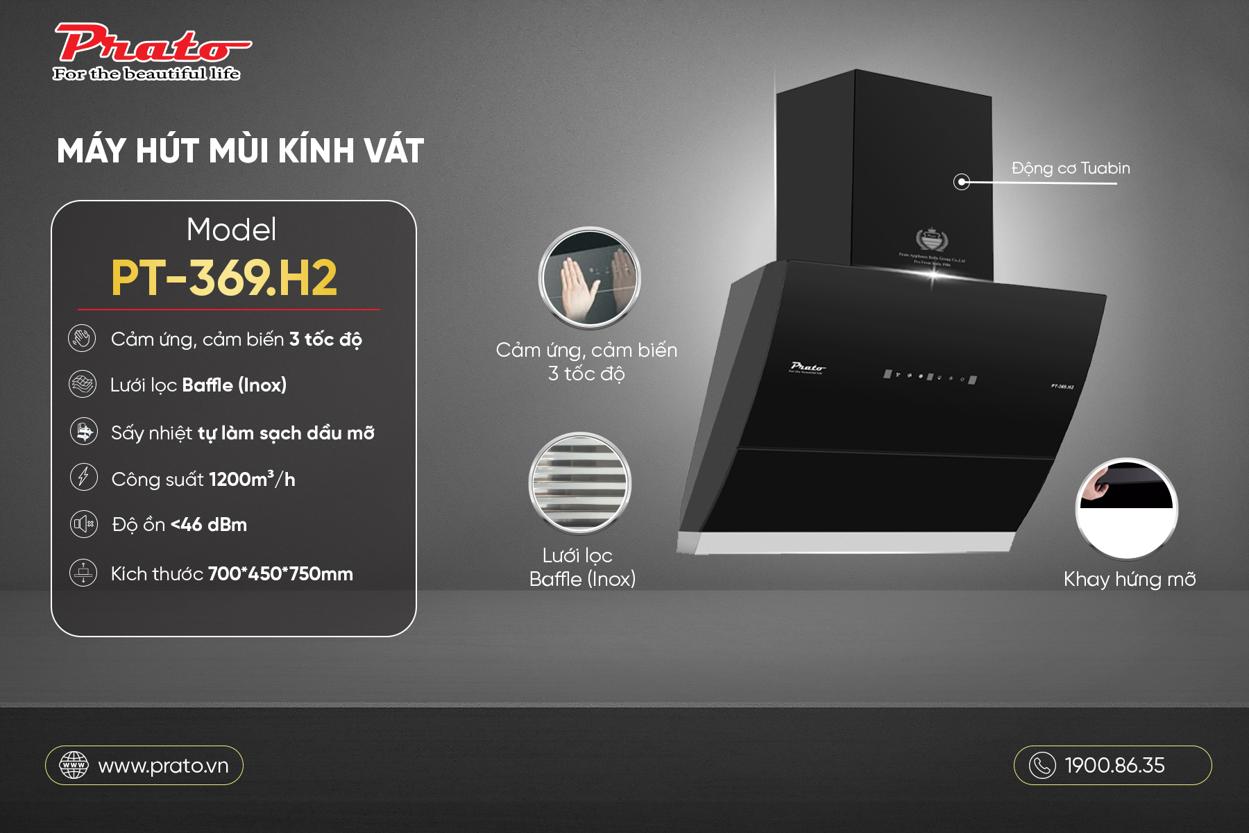 • Máy hút mùi kính vát