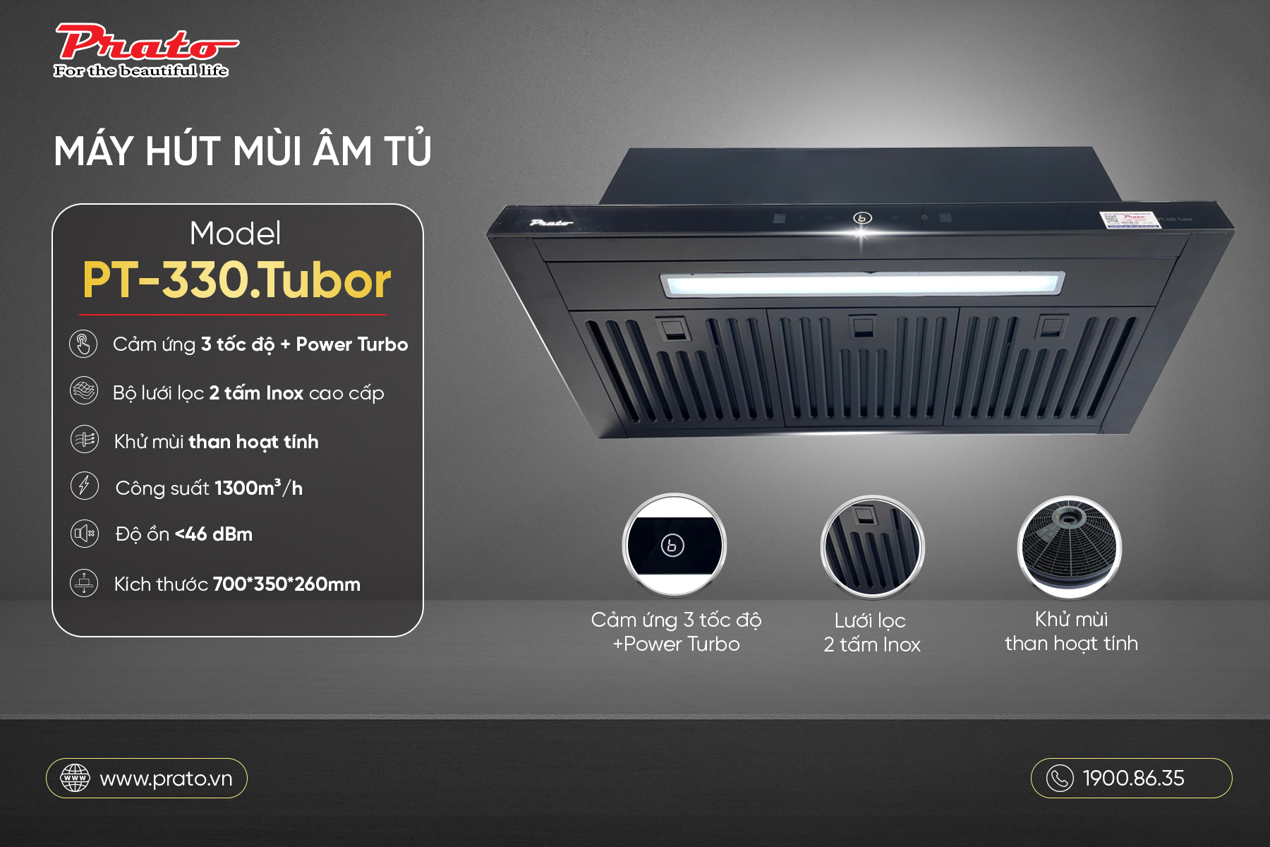 VÌ SAO NÊN CHỌN MÁY HÚT MÙI ÂM TỦ PRATO PT-330.TUBOR?