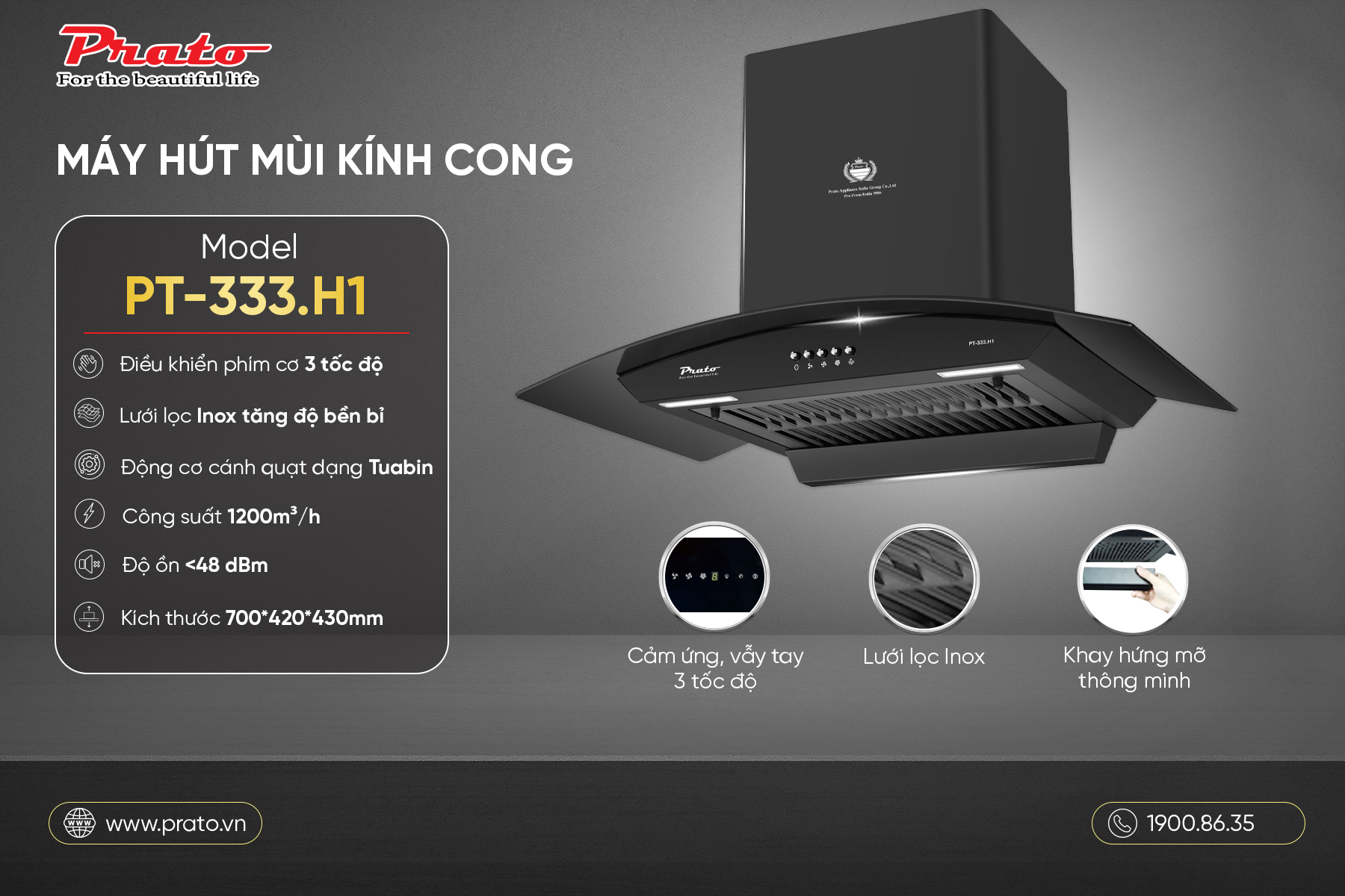 • Máy hút mùi kính cong