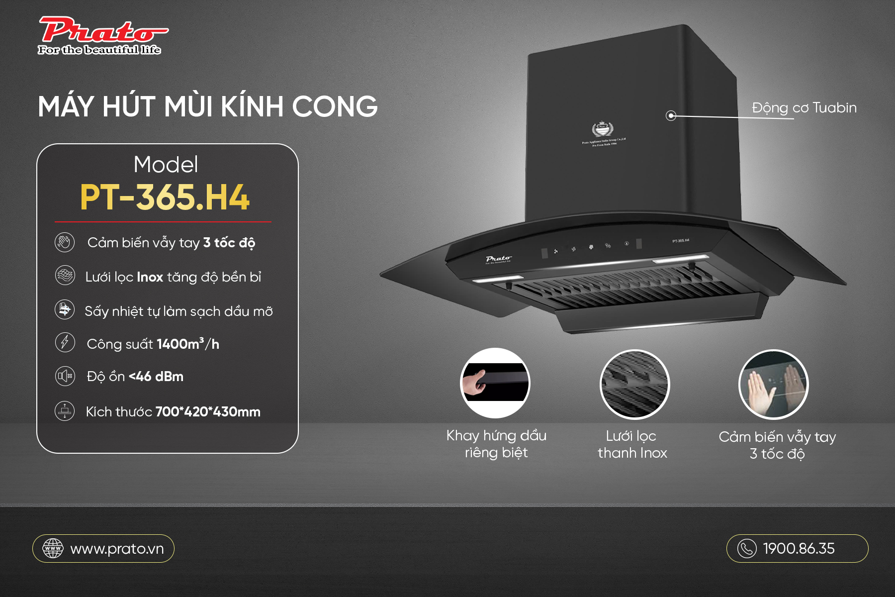 Máy hút mùi PRATO PT-365.H4 – Giải pháp tối ưu cho không gian bếp hiện đại, trong lành